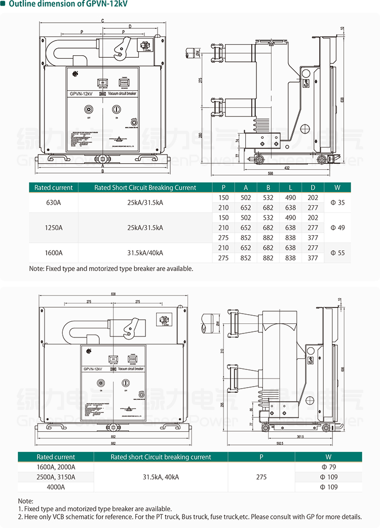 GPVN-12E Vacuum circuit breaker is an indoor device with three-phase AC 50Hz and rated voltage of 12kV, which can be used for control and protection of electrical facilities in industrial and mining enterprises, power plants and substations. This product complies with the relevant provisions of the standards GB1984-2003 High Voltage AC Circuit Breaker, JB3855 Indoor High Voltage AC Vacuum Circuit Breaker, DL403 Technical Conditions for Ordering 10~35kV Indoor High Voltage Vacuum Circuit Breaker and IEC62271-100:2001 High Voltage AC Circuit Breaker.