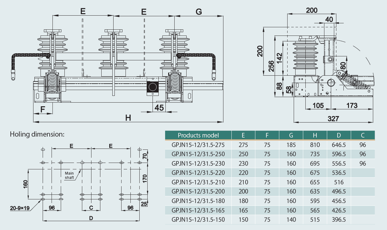 GPJN15-12(7.2)/31.5 type indoor high voltage earthing switch is the assembly type products, its performance meet GB1985-2004 High Voltage AC Disconnector and Earthing Switch and the requirements of standard IEC62271-102:2002. The products suit for power system with 3.6kV-12kV, 3 phase, AC, 50(60)Hz; It has capacity of short-circuit close to protect the electrical equipment from damage, applicable for high voltage switchgear arrangement as the earthing protection when do maintenance.