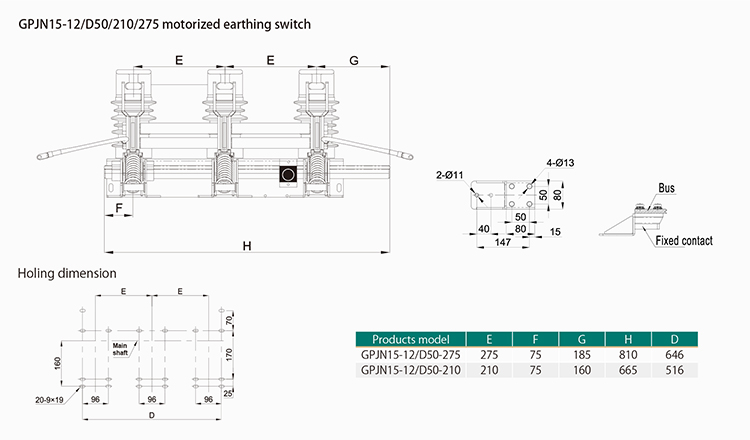 GPJN15-12(24)/D31.5, GPJN15-12/D40, 50, GPJN15-40.5/D31.5 series indoor high voltage motorized earthing switch (short as: motorized earthing switch) is designed for the intelligent switchgear requirement of the electric system. It is suit for 3~40.5KV, 3 phase, AC 50 (60) Hz power system and kinds of high voltage switchgears. It is applicable for high voltage switchgear arrangement as the earthing protection when maintenance. The products' performance meet GB1985-2004 High Voltage AC Disconnector and Earthing Switch and the requirements of standard as well as IEC62271-102:2002.
